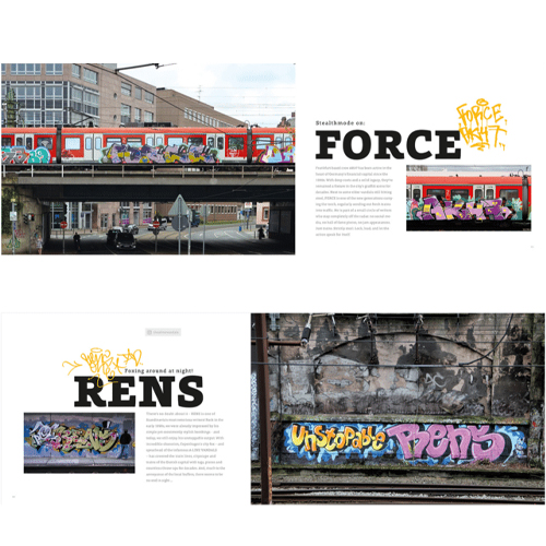 Im Rampenlicht stehen ausserdem FORCE, NIKE und RENS – drei bekannte Namen mit einer Vorliebe für aussergewöhnliche Aktionen. Während RENS aus Kopenhagen seit über vier Jahrzehnten die Trainlines der Stadt prägt, widmen sich FORCE (Frankfurt) und NIKE (NRW) vor allem der kreativen Gestaltung von Metallflächen.