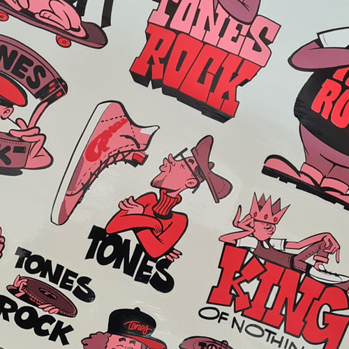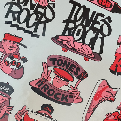 Tones One aus Genf, Mitglied der Writercrews EDK und DVS, ist ein funky Techniker im traditionellen New Yorker Stil. Seine Kunst tanzt mit lebendigen Buchstaben, B-Boy-Charakteren und einer Mikro-Saga im Comic-Stil.