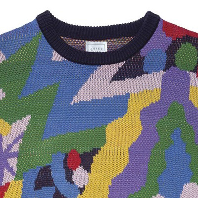 Das Bryant Burst Sweater vom kalifornischen Label The Quiet Life ist ein farbiger Jacquard-Pullover aus weicher Wolle mit Rundhals, langen Ärmeln und buntem Jacquardmuster. Dazu ein Gewebtes Etikett am Nacken.