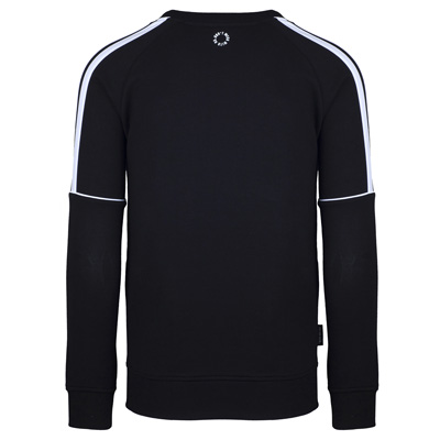 Der Unfair Athletics Sweater Hash Basic ist ein schwarzer Crewneck im Oversize Fit mit eingenähten Streifen auf den Schultern und kleinem Frontstick.