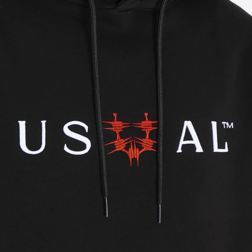 Der Octane Hoodie der italienischen Streetwear-Marke Usual ist ein hochwertiger heavyweight Kapuzenpullover mit gesticktem Usual-Design auf der Brust.