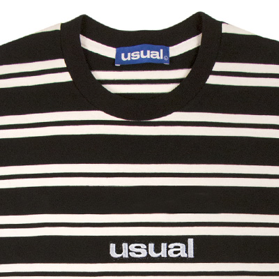 Das Riga Stripe T-Shirt der italienischen Streetwear-Marke Usual ist ein hochwertiges Baumwollshirt mit schickem schwarz-weissem Streifendesign und gesticktem Logo auf der Brust.