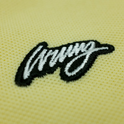 Das Sunrise Polo Shirt von Wrung ist ein schickes, pastellgelbes Polo mit gestickter Wrung Signature-Tag-Applikation auf der Brust.